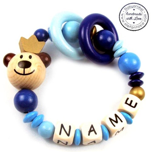 bieten Premium Greifling mit Namen HOLZ Rassel Modell Bärenkönig blau
